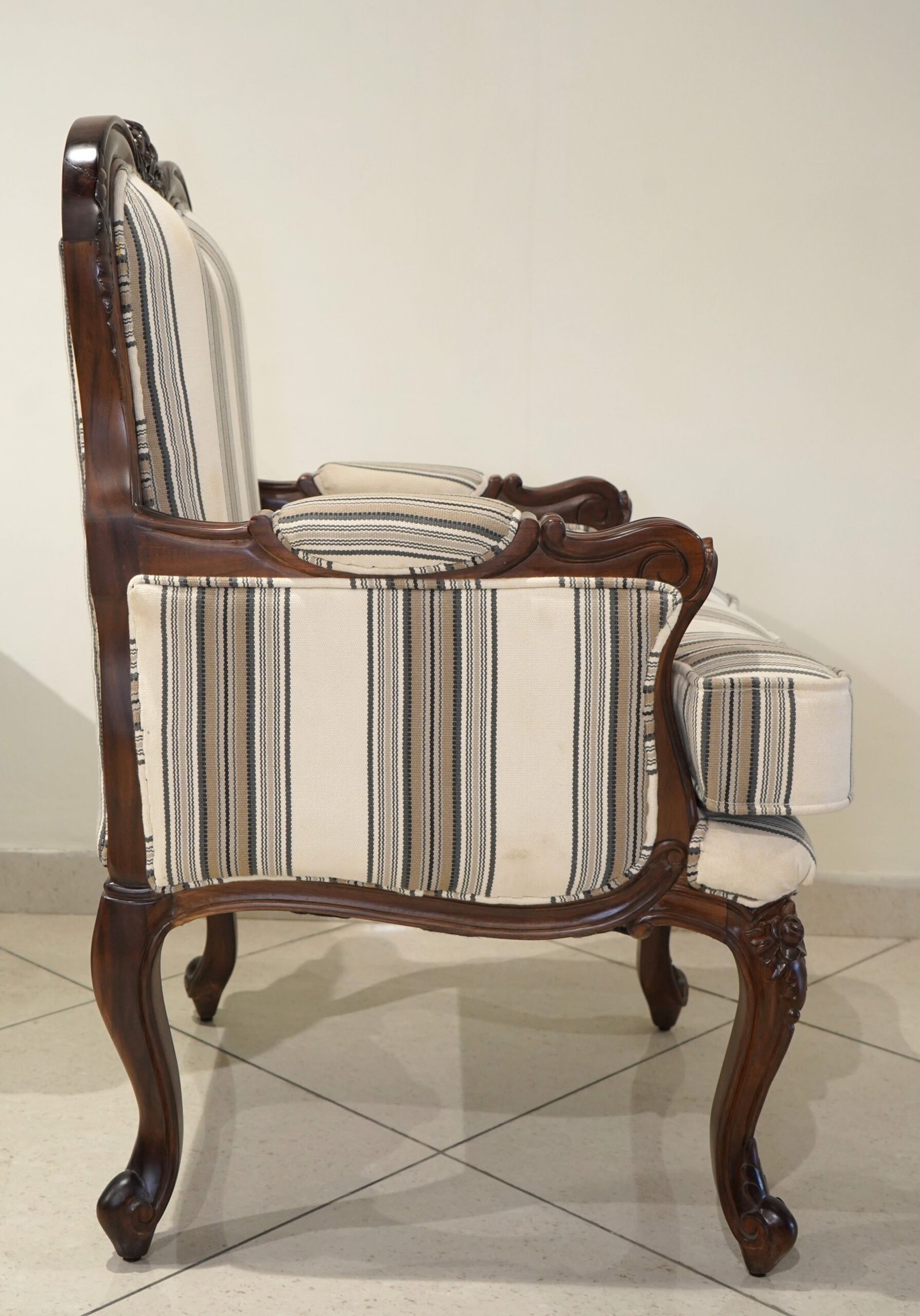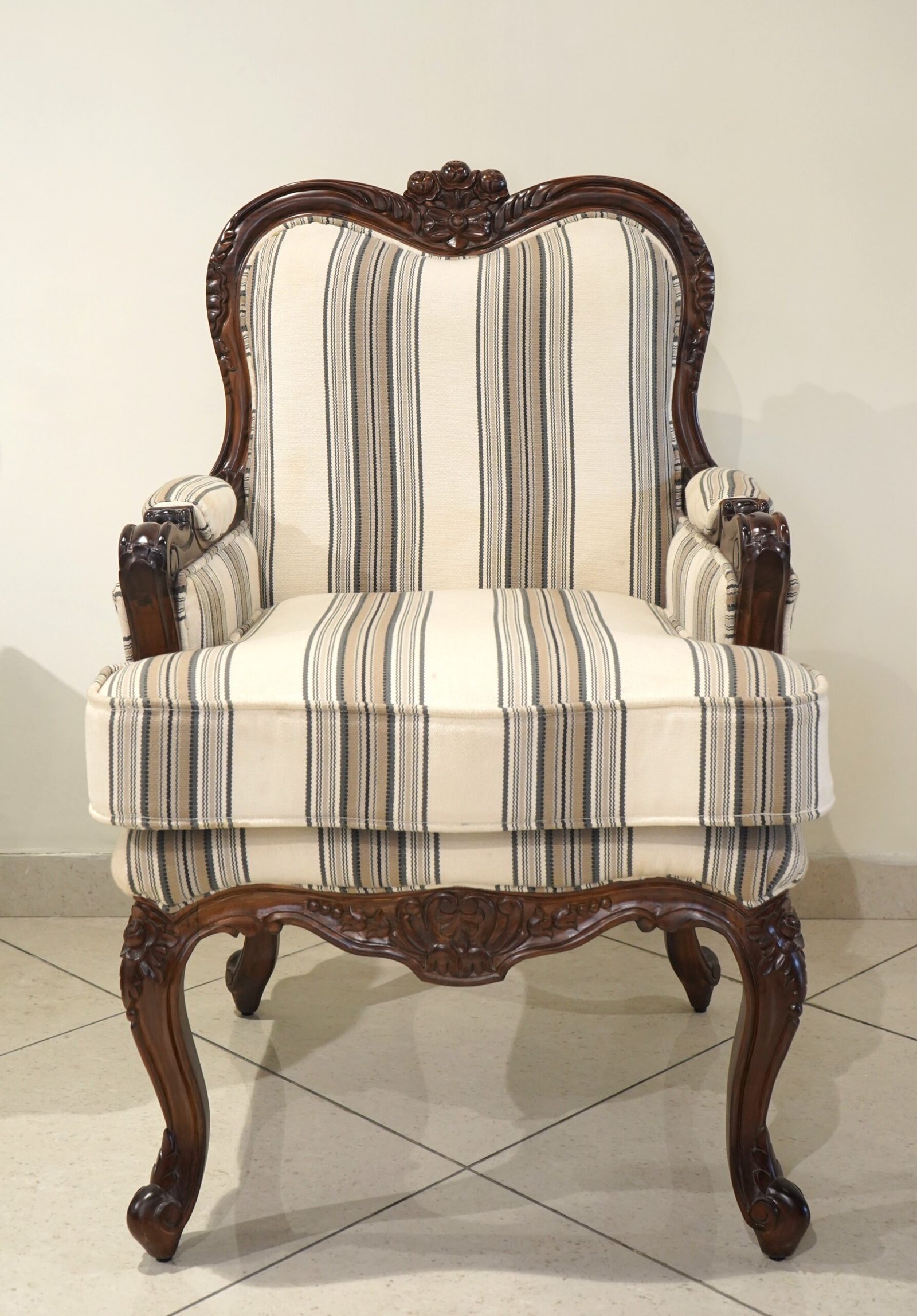 This exquisite chair, crafted from rich teak wood and adorned with plush PU leather, blends timeless elegance and modern comfort. Its hand-carved details and tufted backrest create a regal presence, perfect for adding warmth and luxury to any space with enduring style and sophistication.